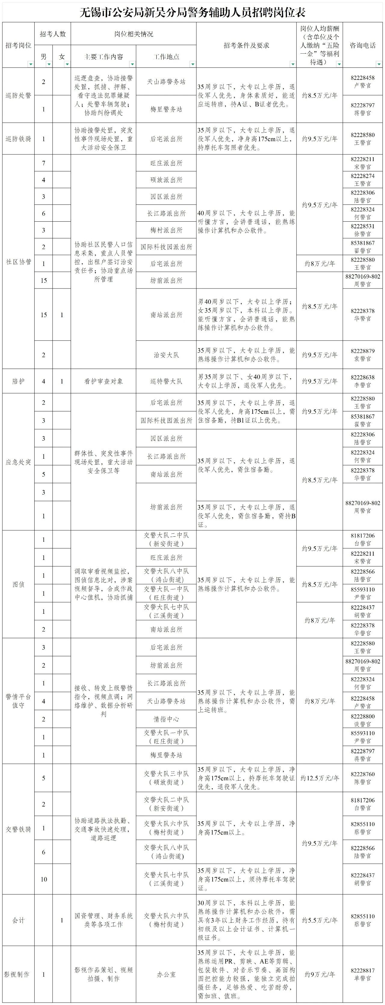 因公安工作需要,新吴公安分局决定面向社会公开招聘警务辅助人员(非人民警察身份且非事业编制人员身份)133名,现将有关事项公告如下: