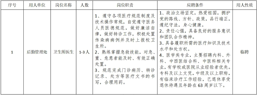 因工作需要,现面向社会公开招聘临聘人员1-3人。
