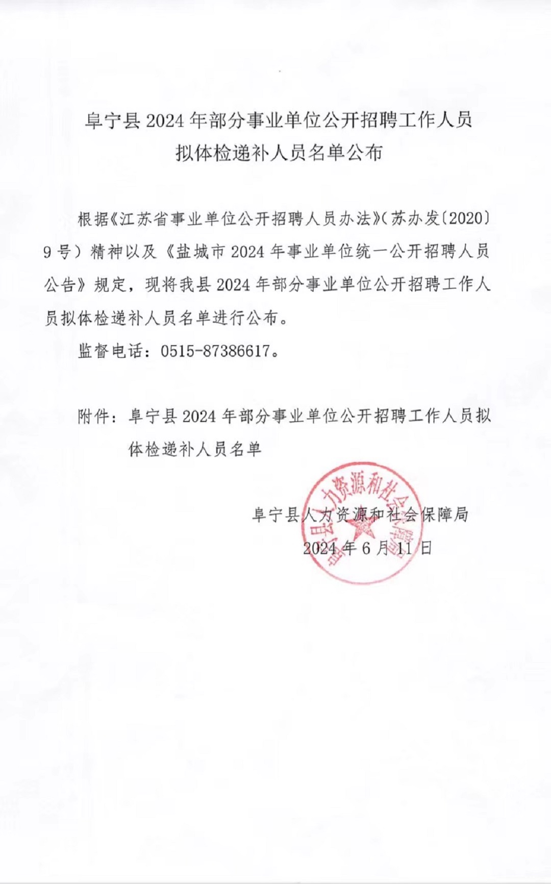阜宁县2024年部分事业单位公开招聘工作人员拟体检递补人员名单.xlsx