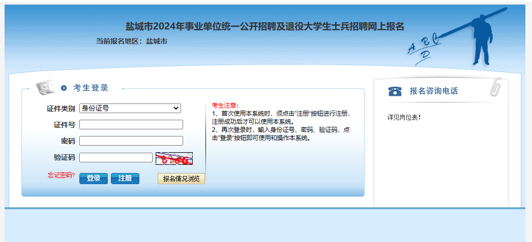 请考生于2024年3月20日9∶00起登陆报名网站下载、打印准考证。打印中如有问题,请与盐城市人事考试中心(0515-86668515)联系。