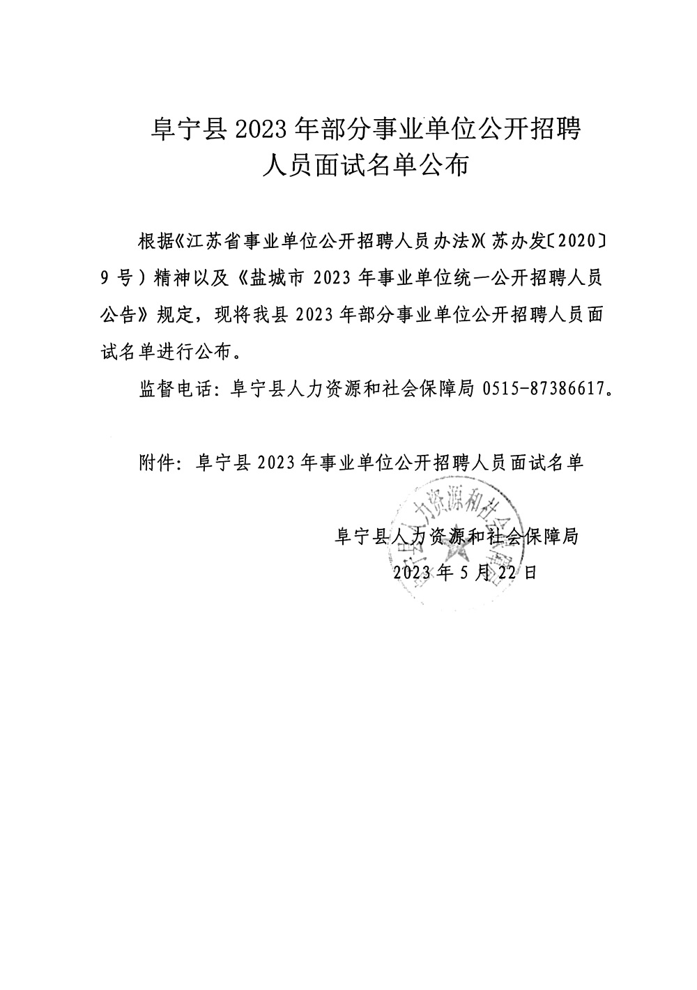 阜宁县2023年事业单位公开招聘人员面试名单.xlsx